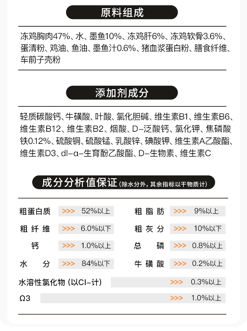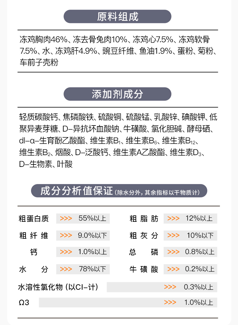 ·99%动物蛋白,主食级营养